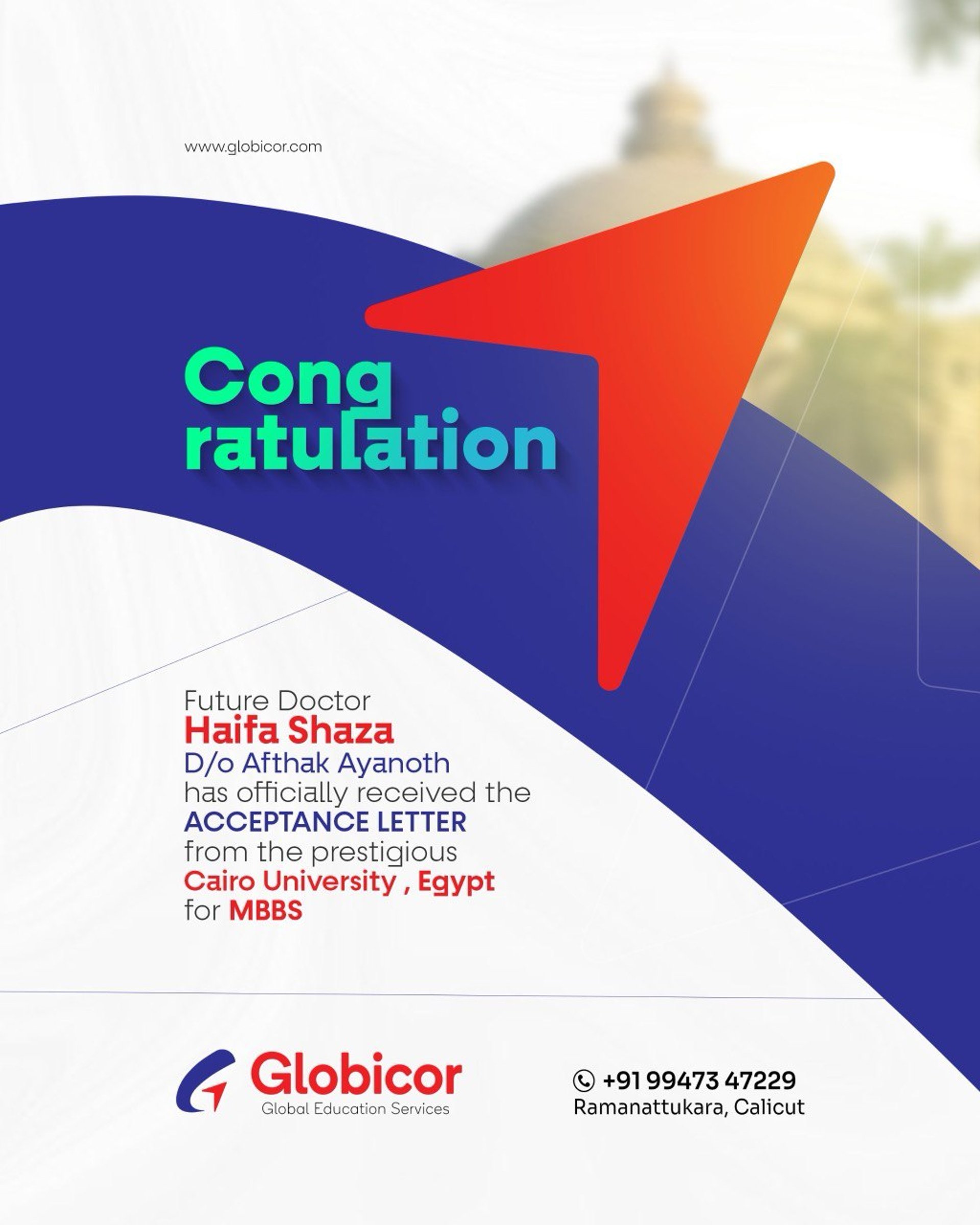 "As a medical student at Cairo University, I can't thank the consultancy enough for their incredible support during my admission process. Their guidance was invaluable, making the complex steps easy to navigate. With their help, I was able to focus on my studies and transition smoothly into university life. I highly recommend their services to anyone looking to study abroad!"